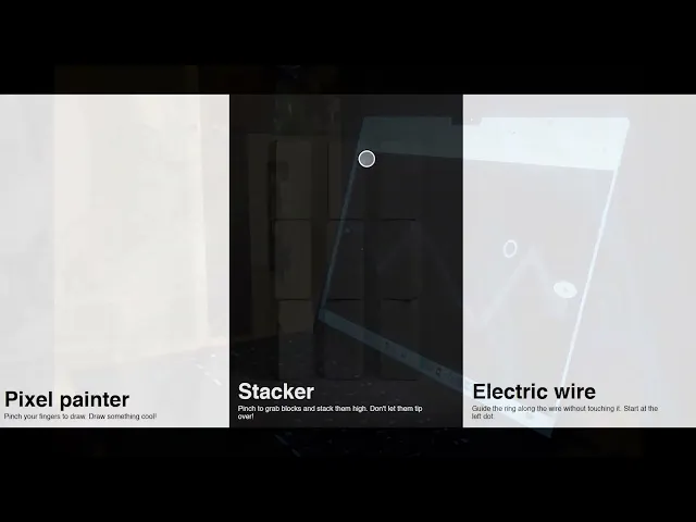 Pinch and follow your hand along the wire to the end. Once your hand moves off the wire, you will have to start over from the beginning. Each time this game is opened from the menu, the wire is randomized.